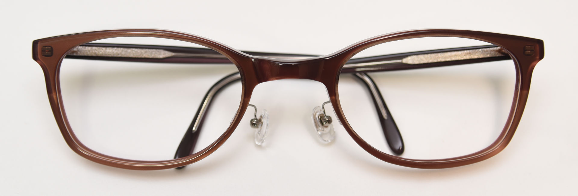 【10】 着ぐるみ用めがね#4 ブラウン→ブルークリア (角度によって青クリアがブラウンと重なったりする趣のあるフレーム) 残り1