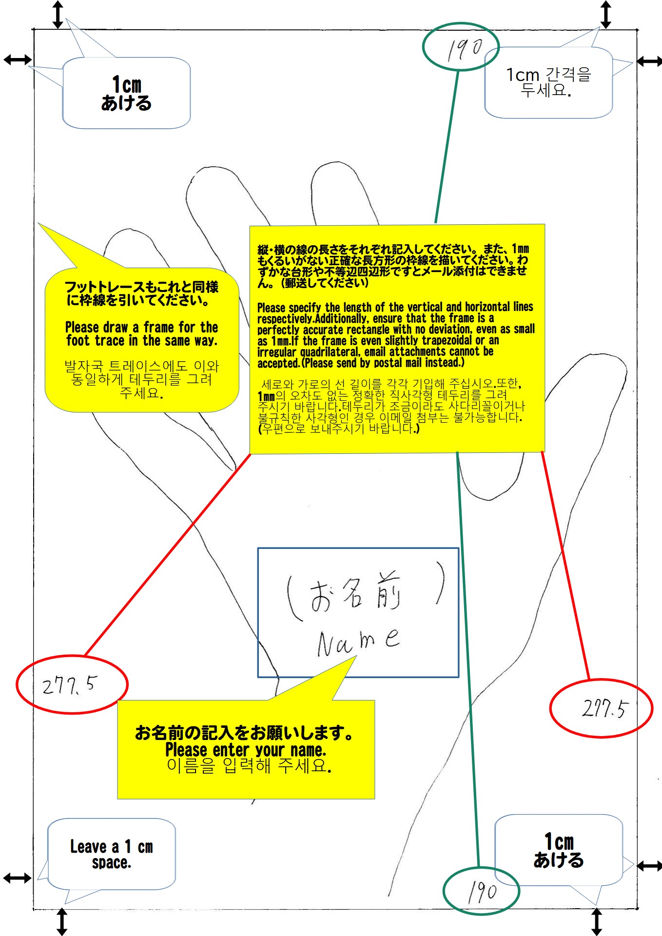 - メールで提出した後も郵送で送ることを依頼する可能性があります。ハンドトレース・フットトレースは納品まで捨てないでください。